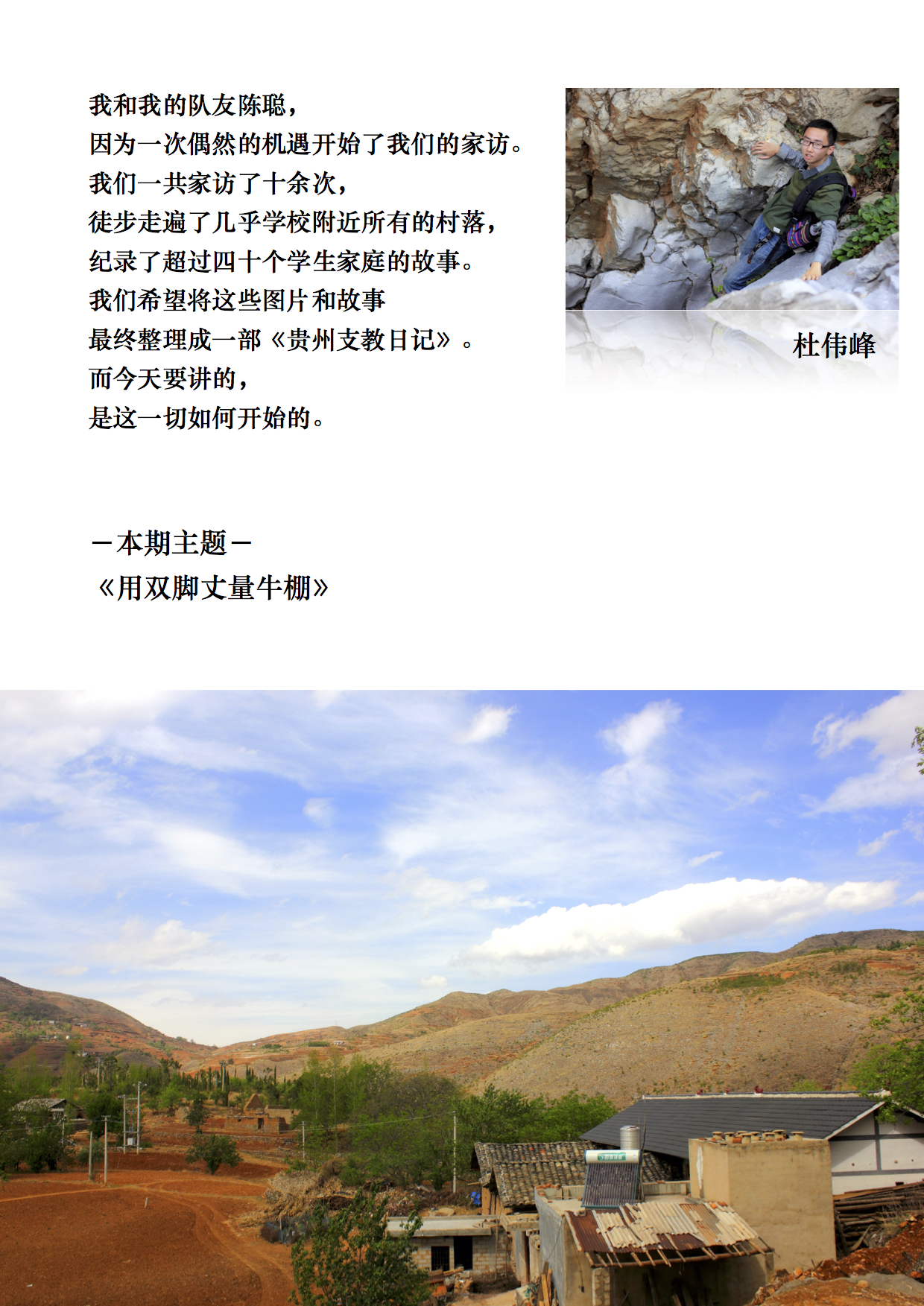 我和队友陈聪,因为一次偶然的机会开始了我们的家访。我们一共家访了十余次,徒步走遍了几乎学校附近所有的村落,记录了超过四十个学生家庭的故事。我们希望将这些图片和故事最终整理成一部《贵州支教日记》,而今天要讲的,是这一切如何开始的。