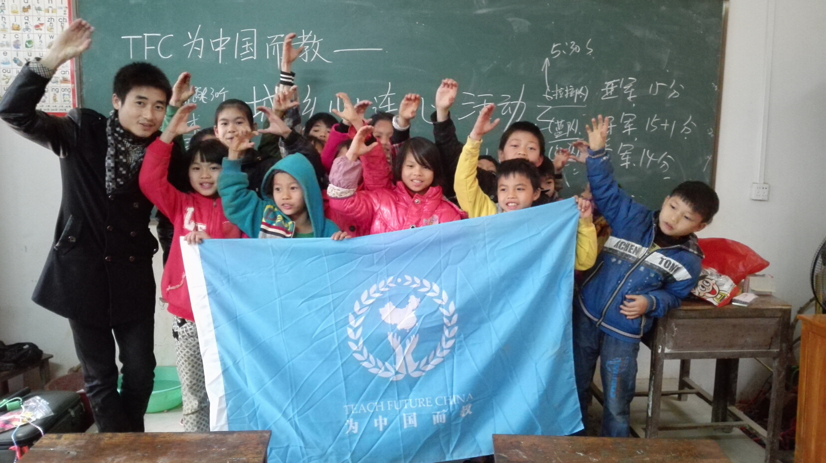 和农村孩子的合影(一起喊“TFC”)